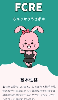 こんにちはー! 最近恋愛版mbti?みたいなの 流行ってるよね! mbti診断より簡単でよかった😂笑 私はちゃっかりうさぎ🐇でした〜 ドライみたいな書いてて、たしかに。ってなった笑 こういう診断系大好き笑 ちなみにmbtiは 提唱者です😊 おじいちゃんウケる👴 みんなは何か教えてね〜! 今日は20時〜出勤します😆 お待ちしております🙇♀️